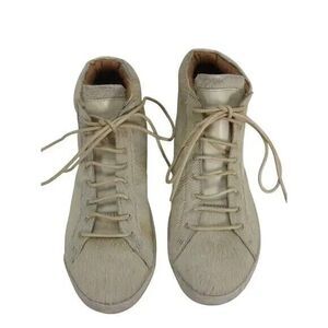 Man X One teaspoon beige/white fur Mr Lucky Stars trainers EU46/US13 Ret$380 NEW W/BAG, RARE RARE RARE!! SUPER SWEET MEN'S BOOTS. STATEMENT PIECE FOR SURE!! Description: Man X Oneteaspoon beige/white fur Mr Lucky Stars trainers. Men"s size EU46/US13 beige leather trim on back, 3 brass tone metal studs detail on upper back shaft, long leather laces, leather lining. Pony Hair, Leather Sole & Heel: Man Made