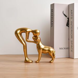 Man and Dog Statue Gold Pet Sculpture Home Décor Gift for Dog Lovers Shelf