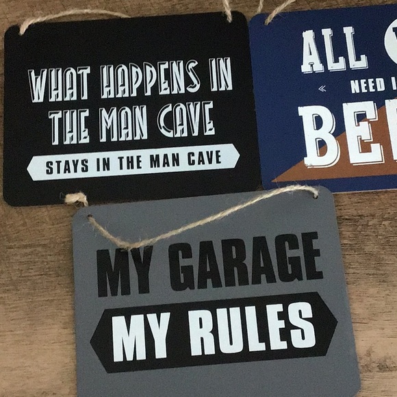Three small signs hanging now just display in your man cave 7 1/2 wide 6 inches tall