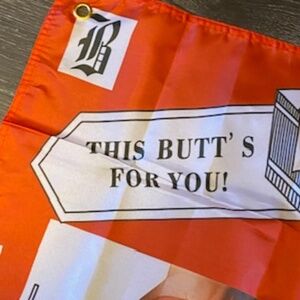 This is a new in package 33x23" nylon flag banner with hanging rivets. It is a play on budweiser...buttweiser ...king of rears...this butts for you with sexy girls. Great gift for the man cave. Bundle and save!!! #mancaseaccessories #budweiserbanner #girliebanner