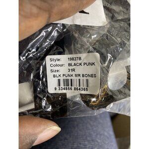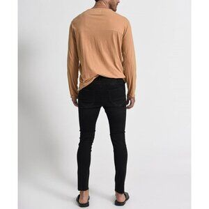 Mr Bones are a super skinny, regular rise, stretch denim jean with a slight slouch. Black Punk is a black wash with natural fading. Light distressing varying between washes. Cold machine wash. Model wears a size 31 Inseam:
