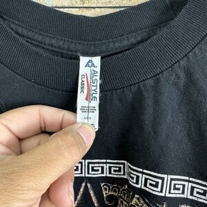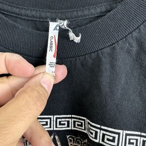 Show off your love for Latin pop rock music with this Mana Band 2016 Tour Shirt. The shirt features the iconic Mana logo and tour dates from their latest tour. Made with high-quality materials, this shirt is comfortable and durable, perfect for any fan of the band. The shirt is available in regular size L and comes in black color, making it a great addition to any wardrobe. Whether you're attending a concert or just want to show your support for Mana, this shirt is a must-have for any true fan.