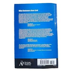 "Managing Web-Based Customer Experiences: Self-Service Integrated with Assisted-Service" by Jon Anton and Mike Murphy is a textbook focused on customer relations in the business and economics subject area. Published in 2003 by Anton Press, T.H.E., this trade paperback book offers insights and strategies for managing online customer experiences through a combination of self-service and assisted-service approaches. With 157 pages of valuable content, this book is a valuable resource for both students and professionals looking to enhance their understanding of customer service in a digital world.
