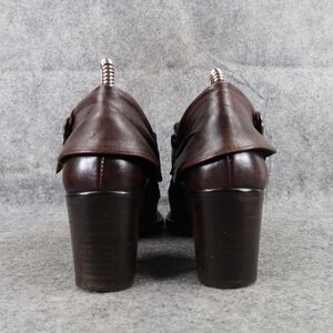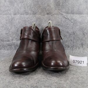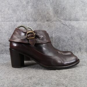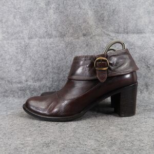 Used Manas Design Shoes Womens 38 Booties Fashion Leather Stacked Heel Round Toe Buckle Zip
