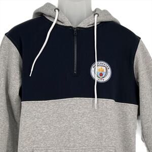 Manchester City Football Club 1/4 Zip Hoodie in Grey and Navy Blue Size Medium