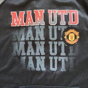 Manchester United Logo Hoodie Mens Medium Black Gray Pocket Soccer Football
