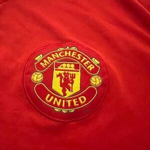 Show your support for the Red Devils with this official Manchester United merchandise jersey. Featuring the legendary Wayne Rooney's #10, this medium-sized men's jersey is decked out in Manchester United's iconic red, ready to make a statement whether you're on the field or cheering from the stands. Crafted with quality materials, this jersey ensures comfort and durability, whether you're playing soccer or just out and about. The officially licensed product guarantees authenticity, so you can be confident in your fandom and the legacy of Manchester United's star player. Shirt is in good, pre-loved condition, with a small spot above the #10 on the front (see last pic).