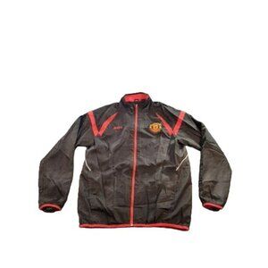 Manchester United Windbreaker Men Sz S MUFC Full Zip Black Red Soccer Sportswear
