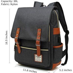 Mancio Vintage Laptop Backpack black USB Charging Port Men,Women Travelling, bag