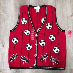 Brand new with tags deadstock sweater vest. Soccer, cleats, sports, athletic , soccer ball, soccer mom. Unique stand out piece!