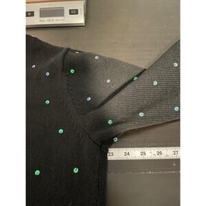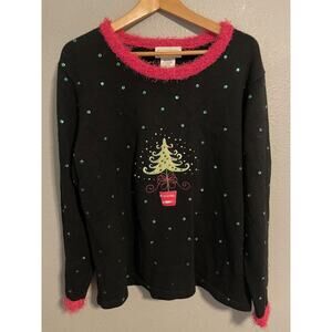 Mandal Bay Sweater Womens XL Black Sequin Christmas Tree Fuzzy Trim Ugly Xmas