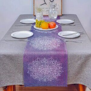 Mandala 100% Linen Purple Table Runner – Elegant Home Décor
