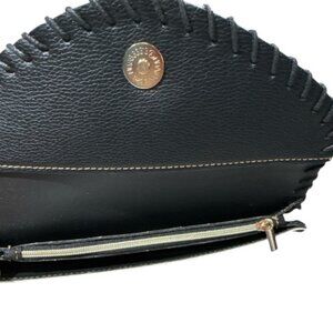 Interior has one middle zip pocket with an additional unzipped pocket on either side. Flap has a magnetic closure. Removable strap attaches on the side, see photo, making it versatile to wear on the shoulder or carry as a clutch. Beautiful and bold colors make this an eye catching piece!