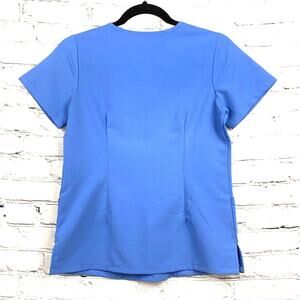 Mandala Medical Scrub Top Womens XXS Blue V Neck Short Sleeve Front Pockets