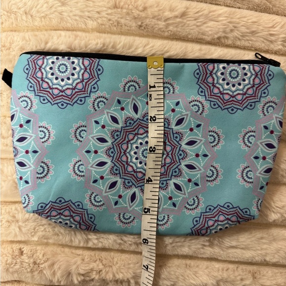 Stylish women's bag featuring a vibrant mandala pattern. The blue and purple design adds a touch of elegance to any outfit.