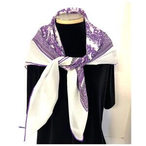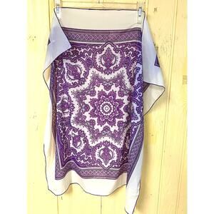 Mandala Purple White SCARF Square Chiffon Flourishes Scroll Print Head Covering