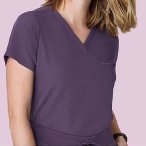This purple scrub set combines functionality and style, featuring a V-neck top and straight-leg pants. Made from a durable polyester/cotton blend, it ensures comfort during long shifts in healthcare settings.