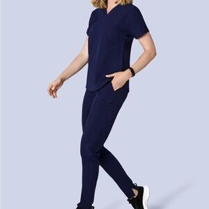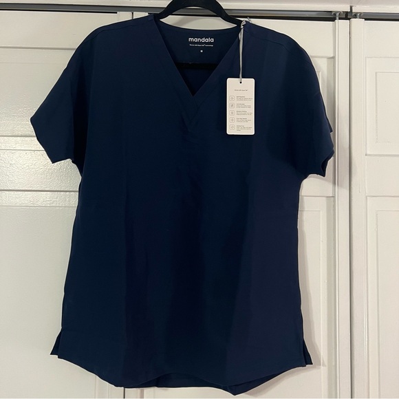 Mandala Scrub set in navy blue. New with tags. Top is the oversized v neck in size medium. Bottoms are the 9 pocket cargo pants in size large tall.