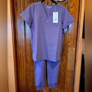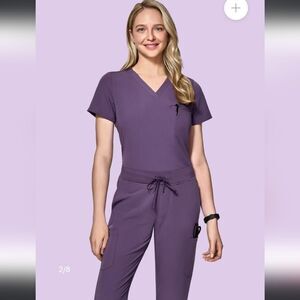 Comfy and stylish scrub top and pants in Dewberry. V Neck top with 9 pocket jogger pants. Better than Figs but half the price!
