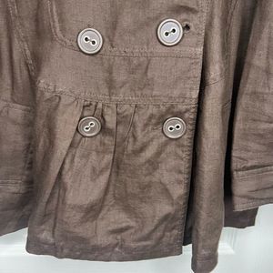 Mandarin Blue Linen Double-Breasted Tab Shoulder Collared Neckline Coat Medium