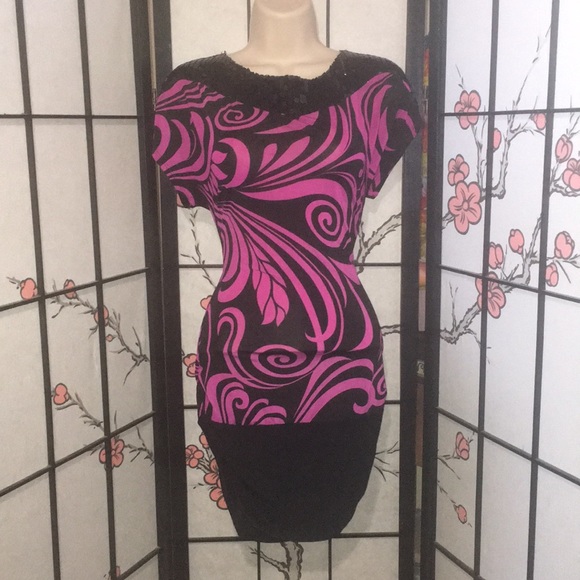 Beautiful pink and black with sequins detail neckline.
