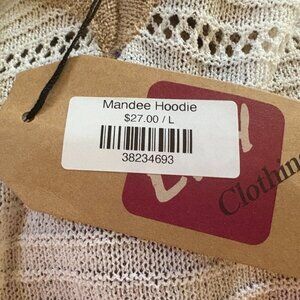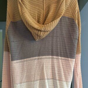NWT, Mandee Brand, Fall Knit Sweater, with hood. Multi Colored: white, cream, soft pink, blue and beige. Size Large. Perfect Condition. New With Tags. Never worn. Perfect worn over a camisol or alone. Great for casual with jeans or dressed up with boots.