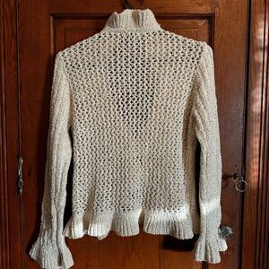 Mandee cream ruffled cardigan Large ivory open front sweater women’s size large romantic ruffle knit top neutral layering piece Mandee size L.