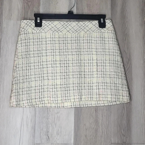 🛍Mandee Knit Skirt Mini Plaid White Yellow Pink Zippered Pleated Juniors 3