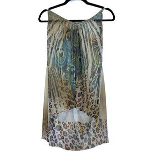 Mandee Sheer High Low Adjustable Blouse - Animal Print - Tie Back - Size Medium