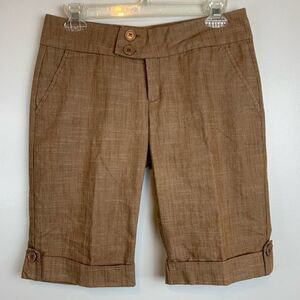 Mandee Solid Beige Brown Cotton Blend Stretchy Capri Bermuda Shorts Size 4