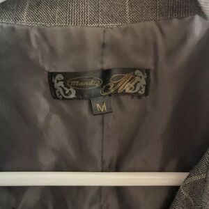 Mandee women’s suit checkered fabric Jacket Ruffles Trim Gray Size M