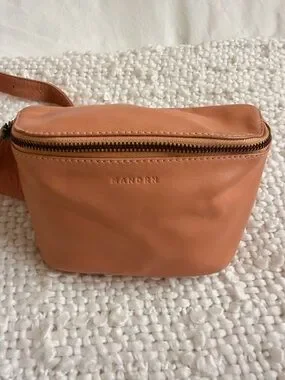 MANDRN leather crossbody bag with smooth finish. Sleek, hands-free design ideal for daily use. Secure zip closure and adjustable strap for comfortable wear. Versatile tan color that pairs well with any outfit. In perfect condition with no inside satins or damage. Slight discoloration on back of bag.