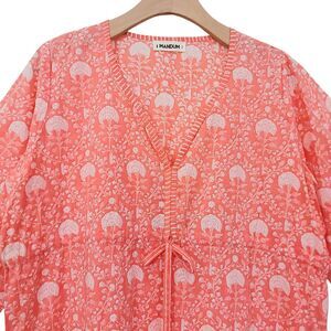 Mandum Maxi Dress Womens Medium Orange Floral Side Slit V-Neck Cotton Bohemian