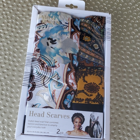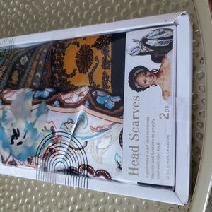 Mane Maven 2pack Stylish head scarves featuring floral and abstract designs. Includes blue, yellow, and brown colors. large 35x35 Can also fold and wear as a top.