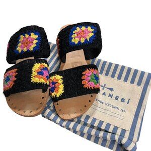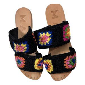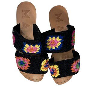 Manebí Black Crochet Granny Square Wide Strap Sandals with Dust Bag Size 7