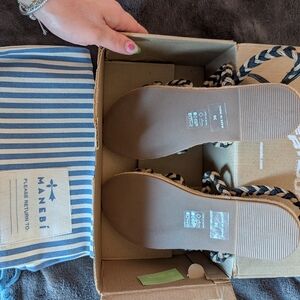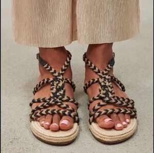 Description : Rope details insole decorated with logo open toe clasp ankle strap straw sole rubber flat sole materials surface jute fiber leather lining jute fiber sole rubber size 37-perimeter 20 cm heel height 7 cm height 1.5 cm