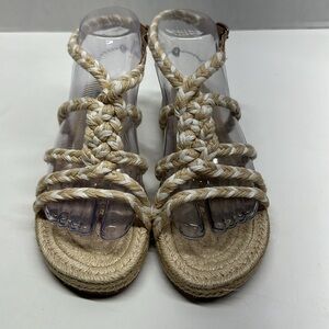 Manebi Yucatan Jute Rope Braided Espadrille Flat Sandals Shoes Tan White Size 36
