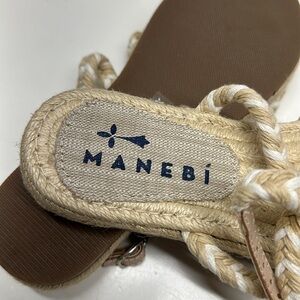 Manebi Yucatan Jute Rope Braided Espadrille Flat Sandals Shoes Tan White Size 36 / US 6