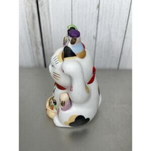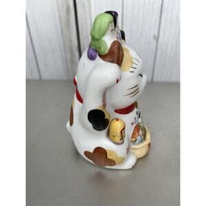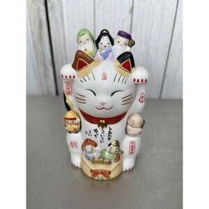 Maneki Neko Figurine Beckoning Fortune Cat Seven Luck 6" Japanese Pottery