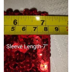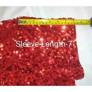 Previously Owned but never worn, this is a heavily sequinned red top from Maner. Has some stretch. Is lined.cherry red in color.