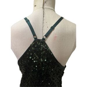Maner Green Sequin Mini Dress Straps Sleeveless Lined Scoop Cocktail Party Sz L