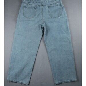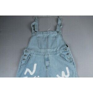 Manfinity Blue Denim Overalls White Lettering Mens XL Painted Graphic Light Wash