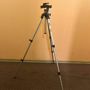 Bogen 3001 Professional Tripod with 3025 Tripod Head. Working properly. 3 section legs, legs adjust for angle. Bogen 3025 tripod head. 55" max height, plus height of tripod head. All sections open and close smoothly, lock properly. Center column adjusts for height. Tripod head has a 1/4 - 20 screw for mounting camera. Weight with the tripod head is just under 5 pounds.