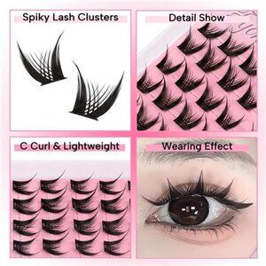 🧿Demon Lash Clusters: A total of 64Pcs of manga style lashes are included. It has a more unique look! Without going to the salon, you can get better results with lower investment, and you can also achieve beauty freedom at home!