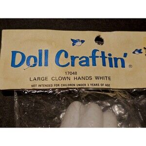 2x Pairs of Large White Hands (Part #17048): Two separate packages. Each package contains a left and a right oversized white clown hand with cuff detailing. (4 hands total).