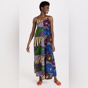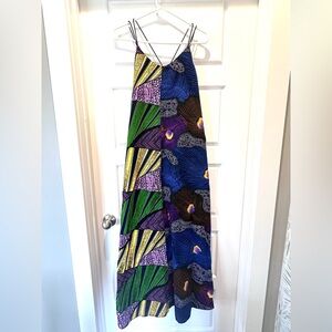 Great pre owned condition. Spaghetti straps. 100% cotton. Made in Zambia. Thick material. Unlined. Pockets. approx 15” pit2pit and 51” long from base of the strap. Open back.