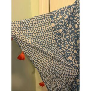 Manglam Blue and White tassled beach cover up. Elastic waist. Size XL