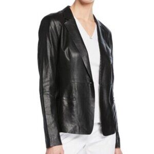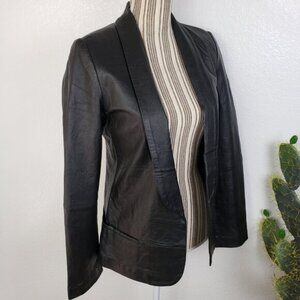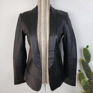 Mango 100% Genuine Leather Blazer Jacket in Black