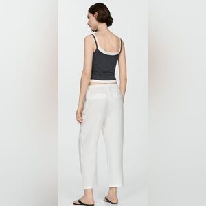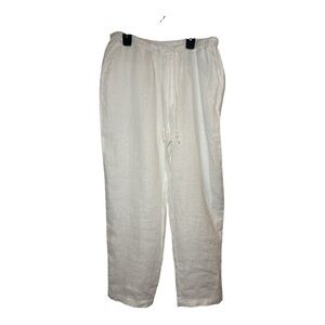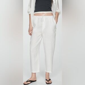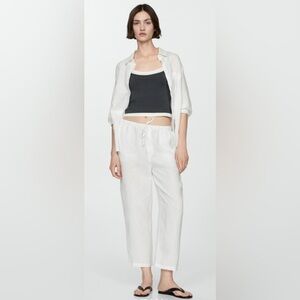 Mango 100% Linen White Drawstring Jogger Pants M Beach Resort Coastal Minimalist
