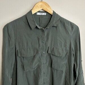 Mango Army Green Button Front Long Sleeve Shirt Size XXS
